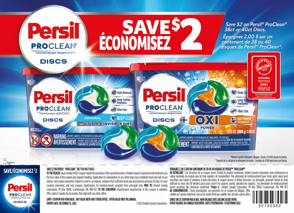 The post Canadian Coupons: Save $2 on Persil ProClean 38 or 40 Count Discs appeared first on Canadian Freebies, Coupons, Deals, Bargains, Flyers, Contests Canada.