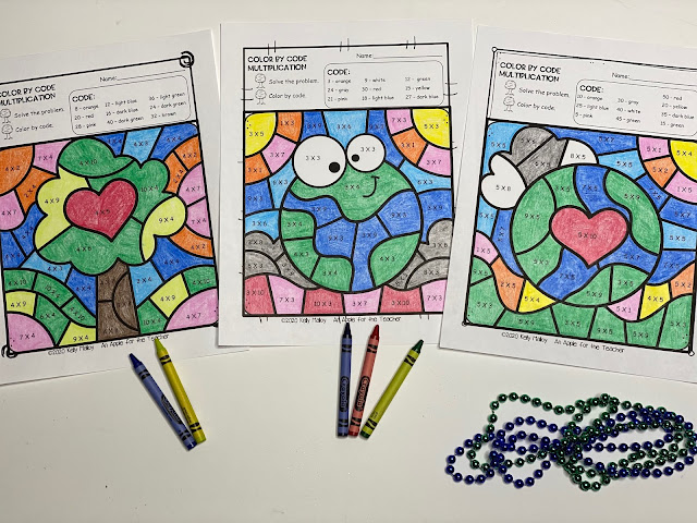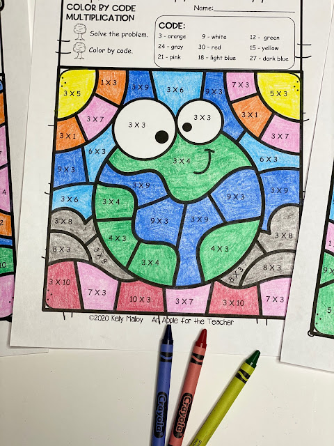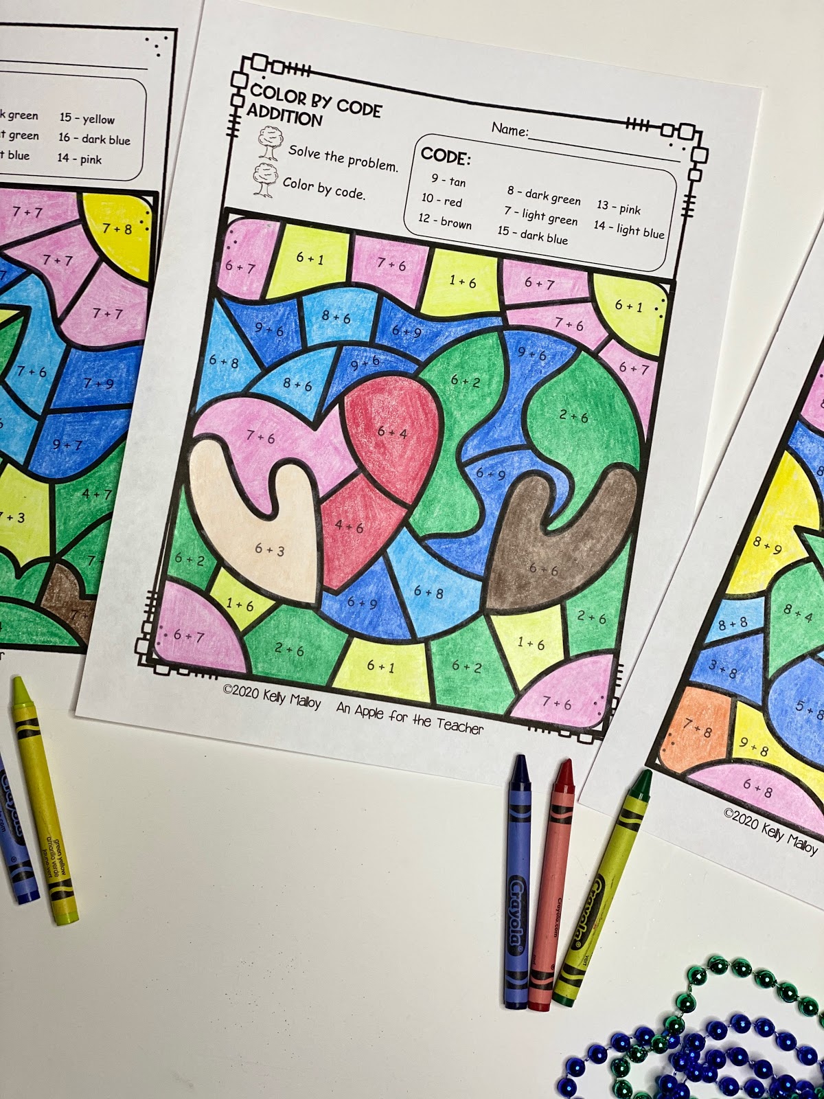 To celebrate Earth Day in my classroom, I like to give my students fun, no-prep Earth Day math worksheets like these color by number sheets where they can practice skills such as addition, and multiplication, while coloring fun Earth Day themed coloring pictures!