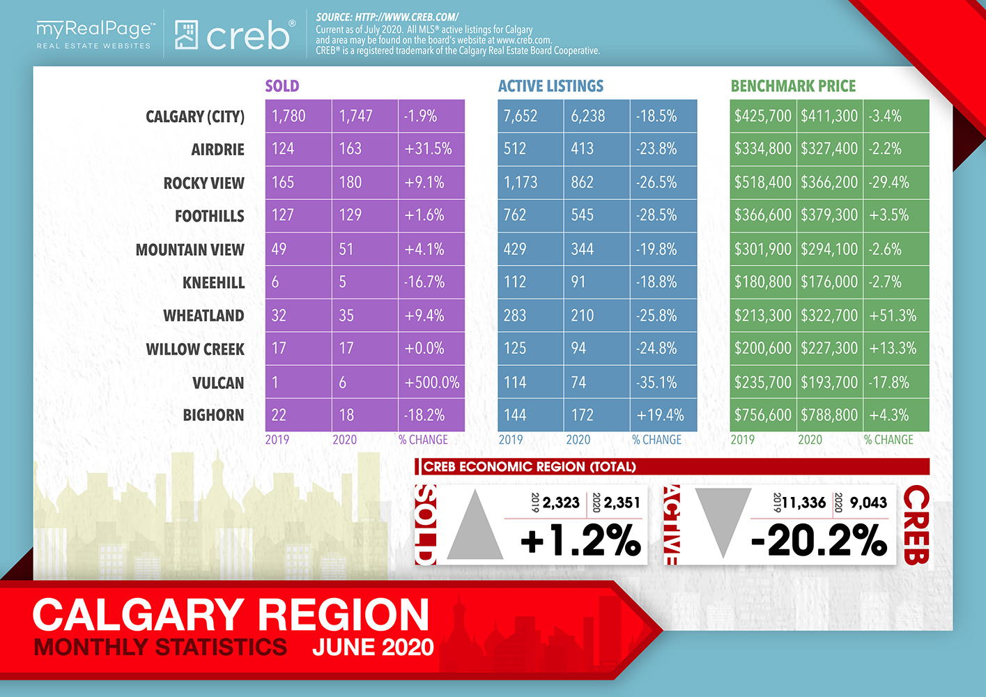 INFOGRAPHICS: June 2020 CREB City And Region Market Reports