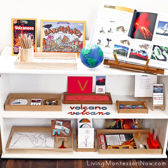 Disclosure: This post contains some affiliate links (at no cost to you).Montessori Shelves with Volcano and Earthquake Themed Activities