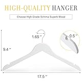 Precisely and bigger cut notches we especially design the cut notches 050 bigger than normal notches 038 The notches are well sanded without any roughness Your strappy shirts and dresses will be kept in original shape with these well sanded bigger notches 360 degrees white hook the white hook matches well with the white wood hangers and rotates 360 degrees enabling users to easily turn the hanger sideways to check out garments without even removing them from the clothing rack Make your closet more elegant and beautiful