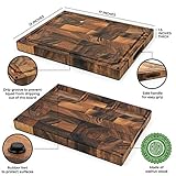 SMIRLY - Its worth the investment our end grain walnut cutting board is a worthy investment for any kitchen After cuts are made in our end grain block the fibers pull back together to resume their original position in a selfhealing manner ensuing serious longevity so your smirly board can be passed down for generations to come Plastic boards may come and go but ours is here for the long haul We offer a 1year free replacement warranty because our customers are important to us Quick easy and convenient food prep is yours our butcher block is thicker than most cutting boards on the market and can be used on both sides saving you time and adding tons of convenience On one side our oversized cutting board has a 3compartment design suitable for prepping chopping or holding diced veggies or cheeses and transfers quickly to an attractive charcuterie board for entertaining The flip side comes equipped with a deep juice groove to catch excess liquids