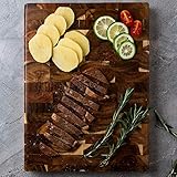 The only board youll ever need the strength and stability of walnut never fall short of your expectations End grain cuts of this hardwood produce a gorgeous oversized cutting board that reveal an exquisite look full of exceptional character and color Our walnut boards wont crack warp or splinter Handles for easy carrying juice grooves dual sided use and nonslip feet let you fall in love with the efficiency while admiring the exceptional beauty and charm it brings to your kitchen