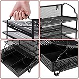 Simple Trending - Durable constructionmade of sturdy black wire mesh construction Rubber pads to prevent it from sliding or scratching surfaces Desktop file organizergreat for holding lettera4 size paper folders binders stationary and notebooks Space savingmaximize your vertical space and keep your desk clear Multifunctiontop 4 tilted trays for easy accessing document the bottom flat tray with plastic desk accessories drawer organizer and use it separately