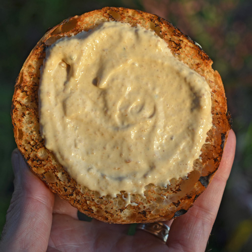 Make the brisket jus mayo. If your jus is still liquid, you can just whisk it into the mayo. Mine had turned to gel in the fridge, so I put it into a mini-food processor for a quick whirl to blend it.