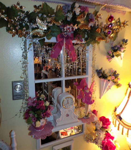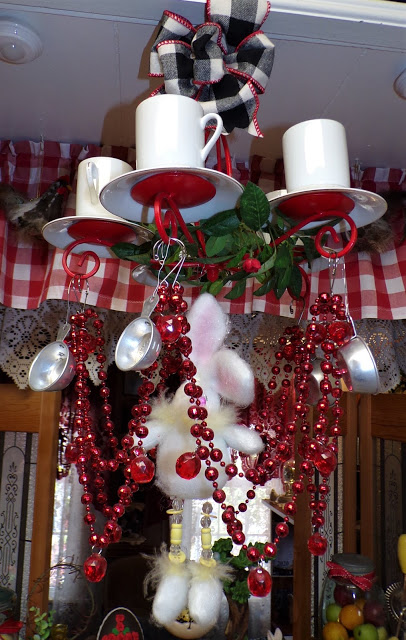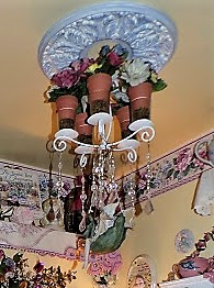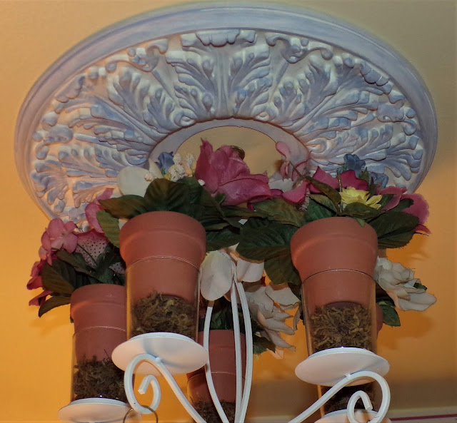 Hanging from the ceiling in this corner is a chandy that I made.....