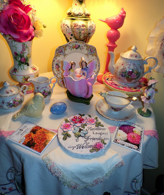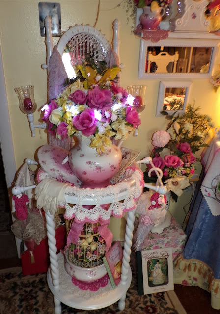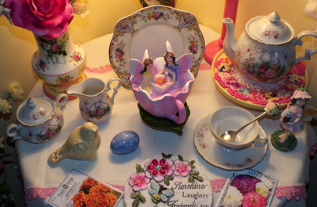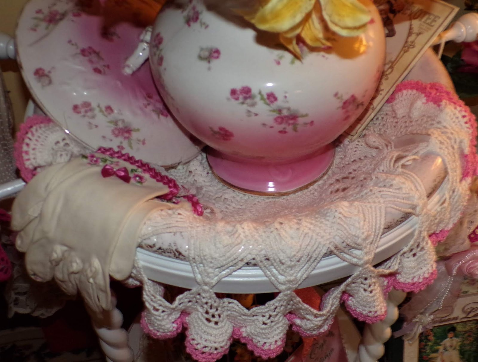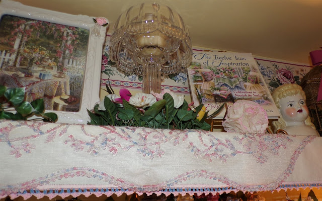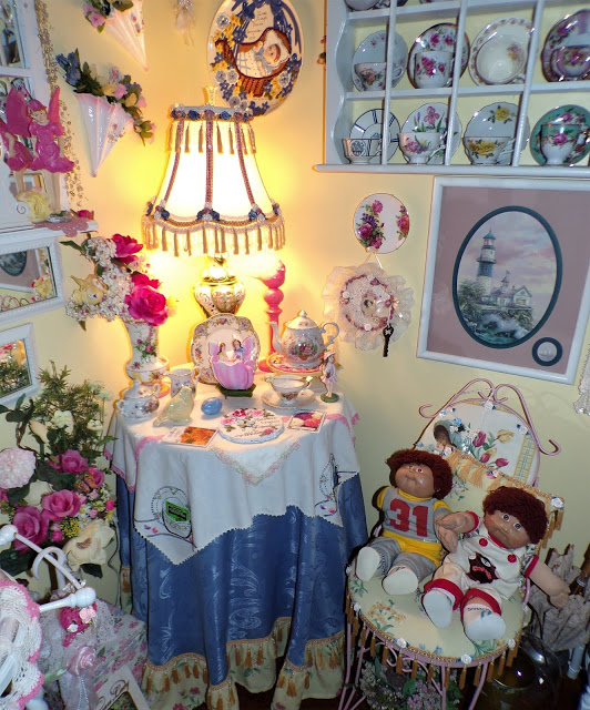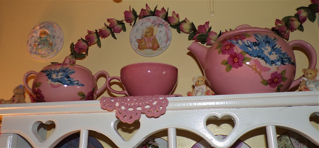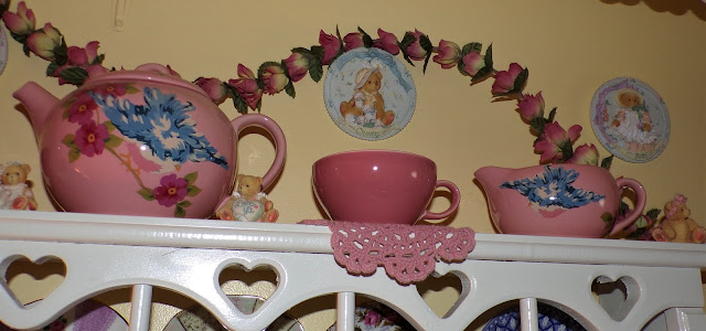 On top of it is a Rosie B tea set gifted to me by my friend, Joan......