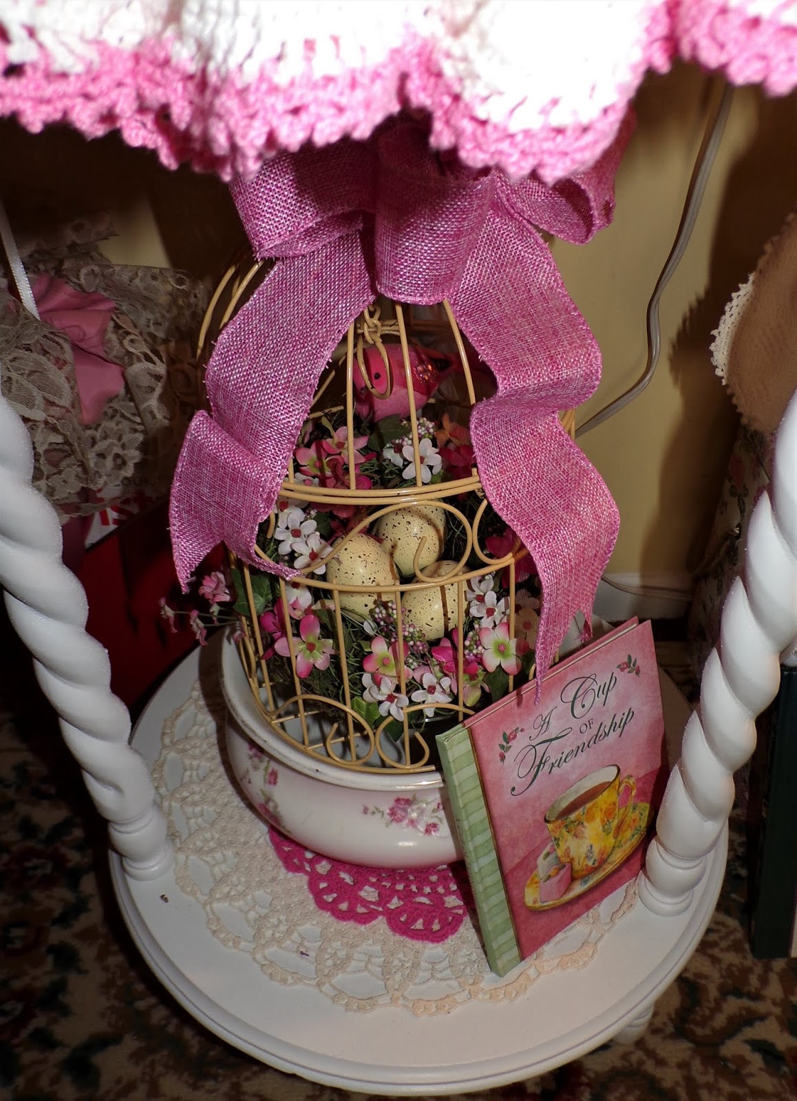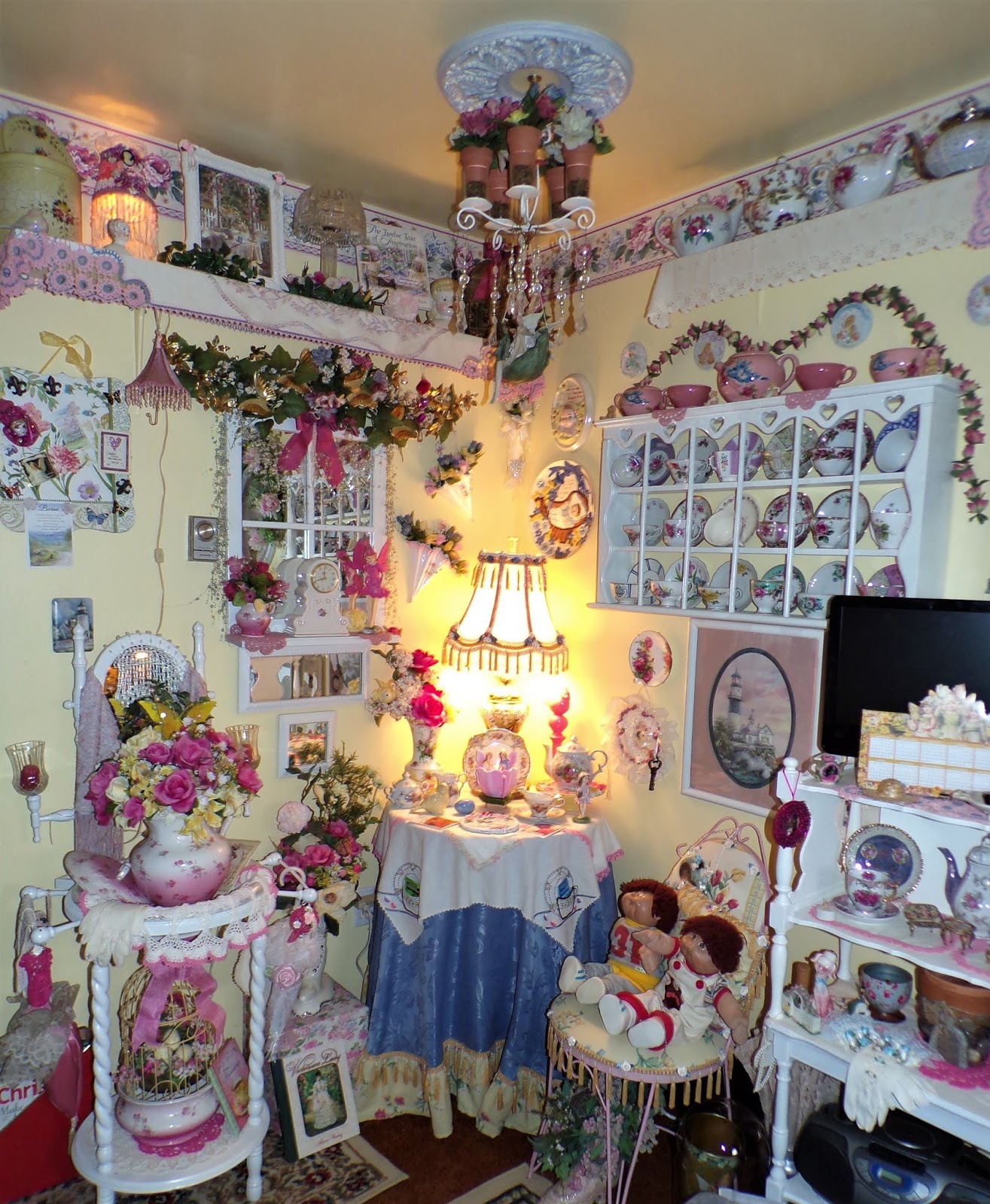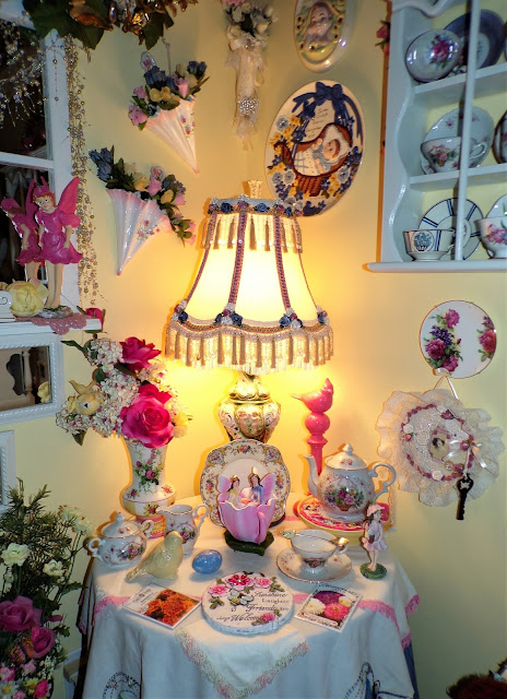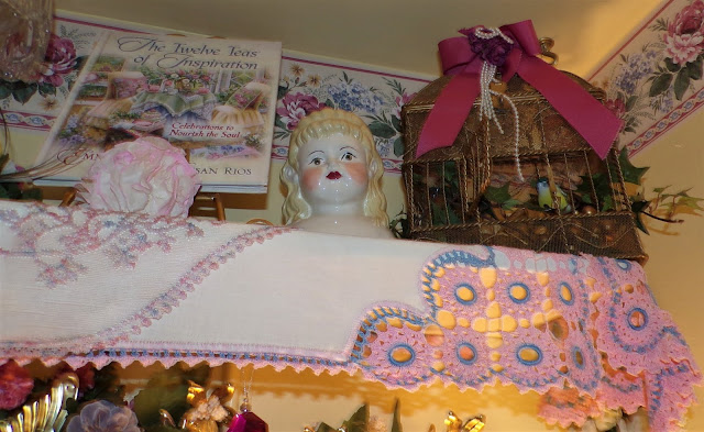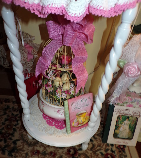 On top of it is a Rosie B tea set gifted to me by my friend, Joan......