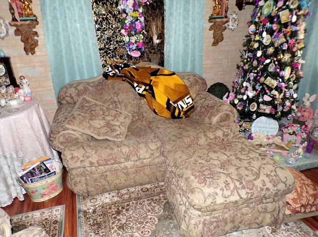 Little did I know a year ago that our son Joey, who is living with us currently until this health crisis is over, would be the one sleeping on that same sofa.....