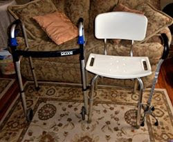 I had a rolling walker, a shower chair, a quad cane and even a straight cane ready to go.....