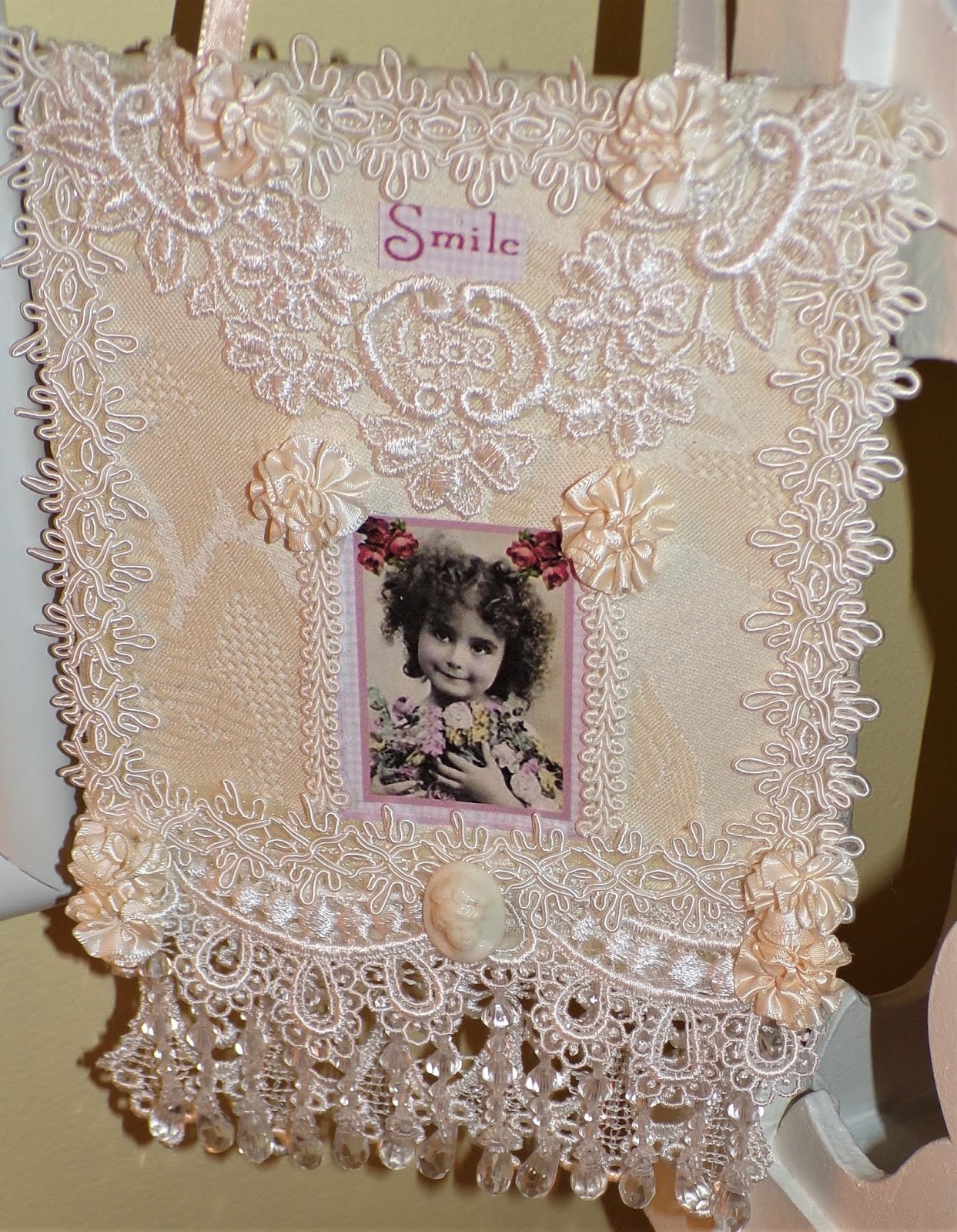 I used some pieces of vintage jewelry when embellishing it....