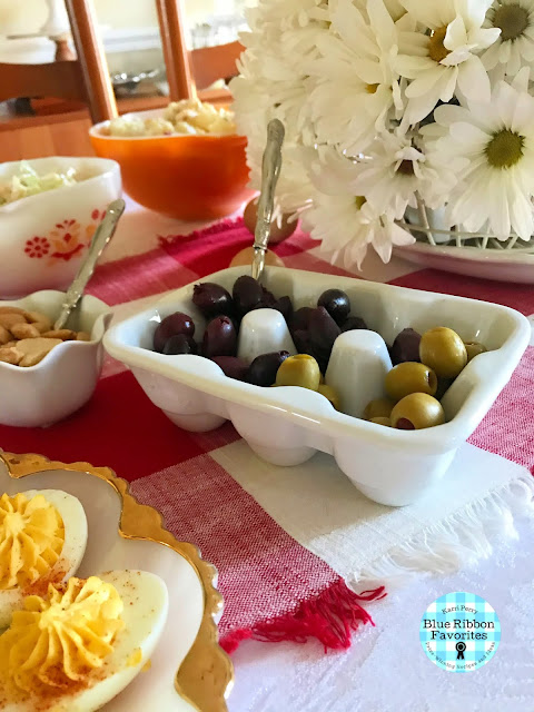 I love menus... especially the vintage ones from cookbooks or fancy restaurants. It’s such fun to see the changing food trends. I pulled out some vintage Pyrex and filled them with some traditional classics that never go out of style for our "Sunday Supper"