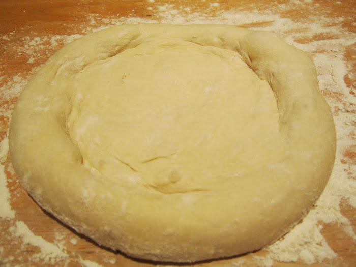 Spread the dough on the floured peel and run your hands around the perimeter to shape it into a round and work out the kinks.