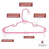 Heavy duty and exceptional quality unlike dull off the shelves plastic kids hangers the sharpty children plastic clothes hangers feature whitecolored clean design that does not stain your childrens garments and create no burrs or flash Theyre slim with smooth finish and high impact hangers for closet organization