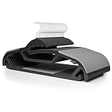 No more sliding off fed up with picking up clothes that always fall off your hangers This set of hangers is worth a shot the nonslip rubber pieces dont allow even a silk blouse to slip off Easy sopened hanging hanging clothes with a tight collar is a challenge but here comes the herothe sshaped opening on top will help you do it easier without stretching the neck of the shirt when hanging it up